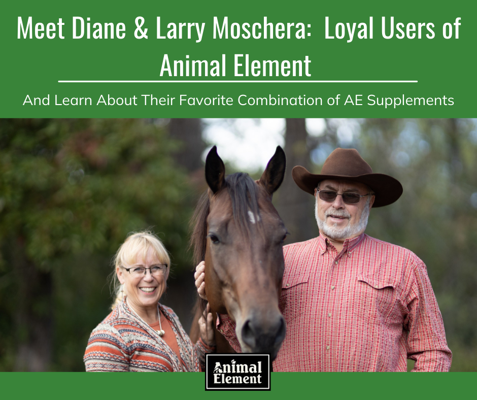 Diane Moschera, AE dealer, barrel racer, and pole bender, is a long-time user of Animal Element horse supplements. She and her husband Larry, have faithfully used AE products for about seven years now. Diane and Larry own a boarding facility in Middle, Tennessee and have about 50 horses on their property: boarders and personal. All of their own horses are on Foundation Daily Detox and NuTrack Digestive Support, and they estimate that about 80% of their boarding horses are also on that combination!